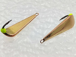 Об этом типе зимней окуневой блесны я слышал давно. Но пару лет назад я реально увидел ее в действии. И не обратил бы внимания, ведь постоянно вокруг люди ловят и блесенки у всех разные. Но в тот раз меня обловили, что случается очень не часто. Потому я и заинтересовался этой блесной. Собрал несколько наиболее рабочих моделей. Стал что то копировать, изменять, тестировать и снова изменять. И сначала на свет появился "Гвоздь Широкий"