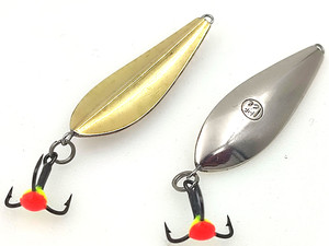 Зимняя блесна Сафоша. Новинка 2024-25 года. Вес блесны 4,4г, длина 36мм. Это паяная блесна, выполненная на двух отдельных коронках. Блесна названа по имени очень популярного у зимних блеснильщиков места на Ладожском озере – мысу Сафоша. Блесна разрабатывалась последние 2 сезона и предназначена для ловли среднеразмерного окуня на глубинах от 1 до 4-5 метров. Идеальной глубиной для нее будет 2-2.5 метра. Выпускается в трех вариантах цветов. Вариант однокрючкового впая с бусиной и с подвесным тройником с каплей. Игра блесны планирующая с осыпанием. Рекомендуемые лески 0.16-0.2мм.