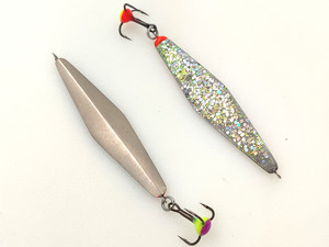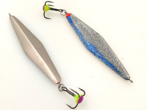 Блесны серии «Кобона» - это ромбы различного размера (длины и ширины) и веса. Эти приманки многократно опробованы в условиях ловли в этих местах. И принесли очень неплохие результаты. Блесна Кобона3 рекомендуется для ловли на глубине от 2 до 3.5 метров, а более длинная и широкая модель Кобона5 предназначена для глубины от 3 до 6 метров.