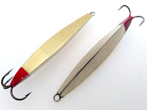 В большом размере блесна отлично приманивает окуня за счет большого веса и мощных колебаний на падении. Позволяет ловить на глубинах до 14 метров (Финский Залив). Отлично работает в "раздачу", но неплохо проявляет себя и при ловле единичного крупного окуня. За счет практически нулевого ухода в сторону на сбросах, данная приманка практически не уводит окуня от вертикали, что прекрасно его концентрирует именно под лункой. 60мм/18,5г